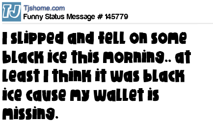 X says I slipped and fell on some black ice this morning.. at least I think it was black ice cause my wallet is missing.