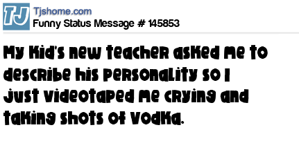 X says My kid's new teacher asked me to describe his personality so I just videotaped me crying and taking shots of Vodka.