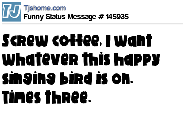 X says Screw coffee, I want whatever this happy singing bird is on. Times three.