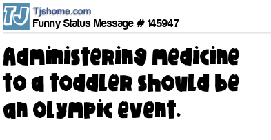 X says Administering medicine to a toddler should be an Olympic event.