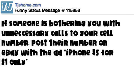 X says If someone is bothering you with unneccessary calls to your cell number, post their number on eBay with the ad "iPhone 5S for $1 only"