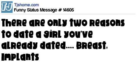 - # 65014 There are only two reasons to date a girl you've already dated: breast implants.