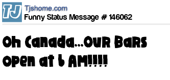 X says Oh Canada...Our Bars open at 6 AM!!!!
