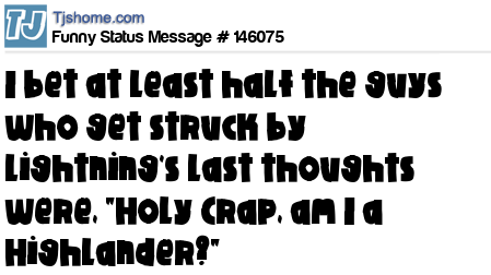 X says I bet at least half the guys who get struck by lightning's last thoughts were, "Holy Crap, am I a Highlander?"