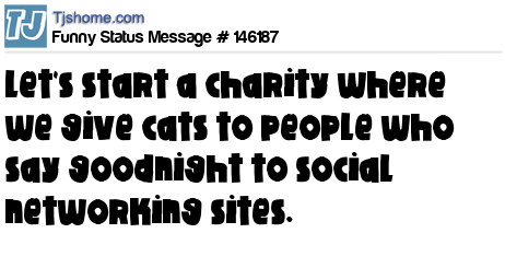 X says Let's start a charity where we give cats to people who say goodnight to social networking sites.