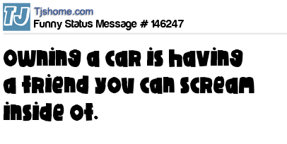 X says Owning a car is having a friend you can scream inside of.