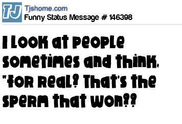 - # 92600 I look at people sometimes and think..for real? That's the sperm that won?