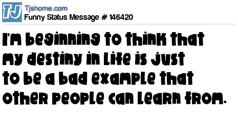 X says I'm beginning to think that my destiny in life is just to be a bad example that other people can learn from.