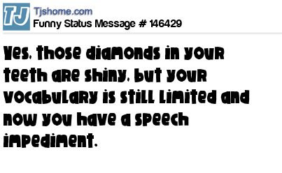 X says Yes, those diamonds in your teeth are shiny, but your vocabulary is still limited and now you have a speech impediment.