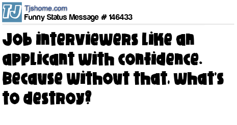 X Job interviewers like an applicant with confidence. Because without that, what's to destroy?