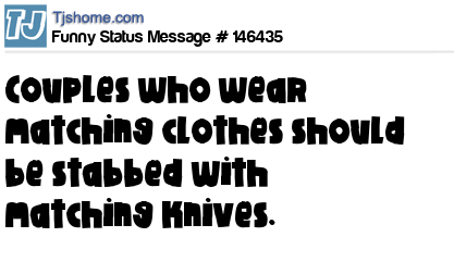 X says Couples who wear matching clothes should be stabbed with matching knives.