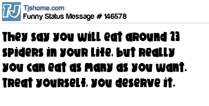 - # 140544 They say you will eat approximately 23 spiders in your life,,, but really you can eat as many as you want.. Treat yourself, you deserve it.