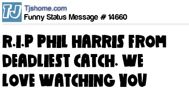 X says R.I.P PHIL HARRIS FROM DEADLIEST CATCH. WE LOVE WATCHING YOU
