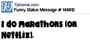 - # 157406 thanks to Netflix I can tell my doctor I've done a lot of "marathons"