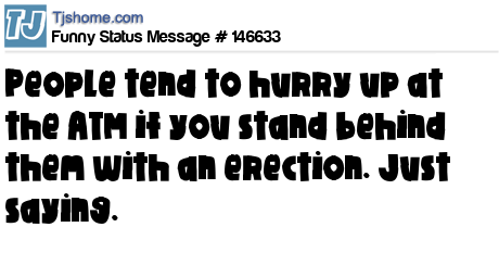 X says People tend to hurry up at the ATM if you stand behind them with an erection. Just saying.