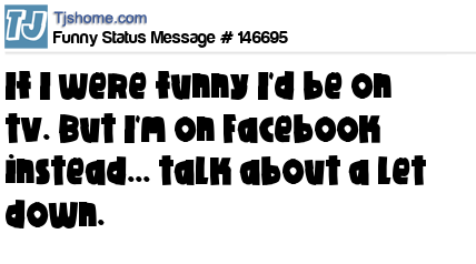 X says If I were funny I'd be on tv. But I'm on Facebook instead... talk about a let down.
