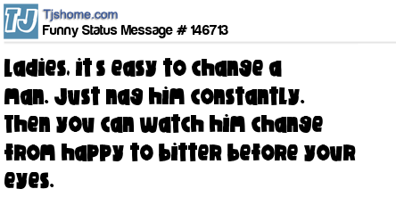 X says Ladies, it’s easy to change a man. Just nag him constantly. Then you can watch him change from happy to bitter before your eyes.