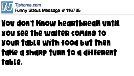 X says You don't know heartbreak until you see the waiter coming to your table with food but then take a sharp turn to a different table.