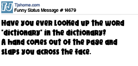 - # 51731 Have you ever looked up the word "dictionary" in the dictionary? A hand comes out of the page and slaps you across the face