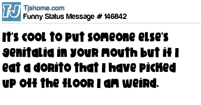X says It's cool to put someone else's genitalia in your mouth but if I eat a dorito that I have picked up off the floor I am weird.