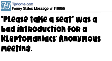 X says "Please take a seat" was a bad introduction for a Kleptomaniacs' Anonymous meeting.