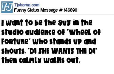 X I want to be the guy in the studio audience of "Wheel of Fortune" who stands up and shouts, "D! SHE WANTS THE D!" then calmly walks out.