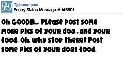 X Oh GOODIE,,,, Please post some more pics of your dog...and your food. Oh, why stop there? Post some pics of your dogs food.