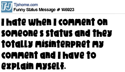 X says I hate when I comment on someone’s status and they totally misinterpret my comment and I have to explain myself.
