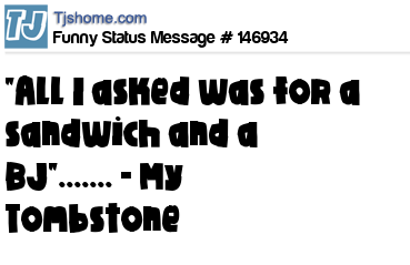 X "All I asked was for a sandwich and a BJ"....... - My Tombstone