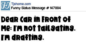 X says Dear Car in Front of Me: I'm not tailgating. I'm drafting.