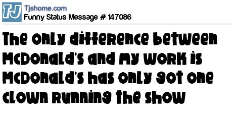 - # 128570 The only difference between Mcdonald's and my work is Mcdonald's has only got one clown running the show..
