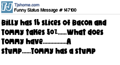 X says Billy has 16 slices of Bacon and Tommy takes 50%......What does Tommy have................A stump......Tommy has a stump