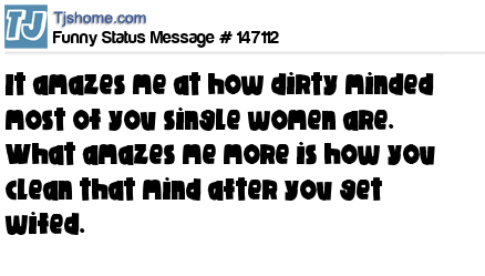 X It amazes me at how dirty minded most of you single women are. What amazes me more is how you clean that mind after you get wifed.
