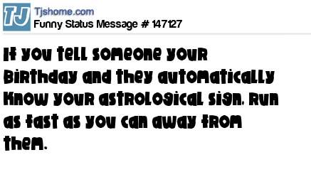 X says If you tell someone your Birthday and they automatically know your astrological sign, run as fast as you can away from them.