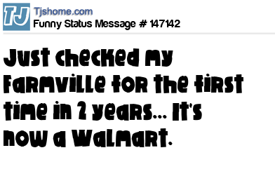 X  Just checked my Farmville for the first time in 2 years... It's now a Walmart.