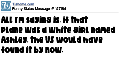 X says All I'm saying is, if that plane was a white girl named Ashley, the US would have found it by now.