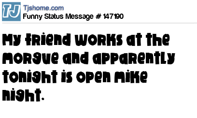 - # 163069 "Open Mike Night" sounded like a lot of fun until I realized I'd been invited to an autopsy.