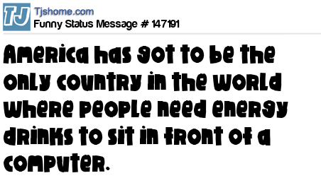 X says America has got to be the only country in the world where people need energy drinks to sit in front of a computer.