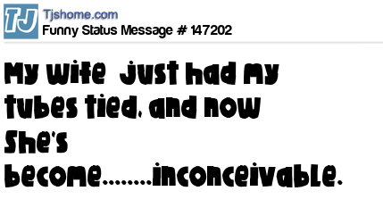 X My wife just had my tubes tied, and now She's become........inconceivable.