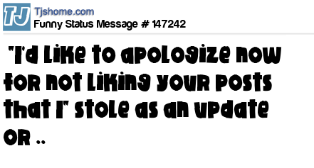 X "I'd like to apologize now for not liking your posts that I" stole as an update or ..