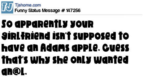 X says So apparently your girlfriend isn't supposed to have an Adams apple. Guess that's why she only wanted an@l.