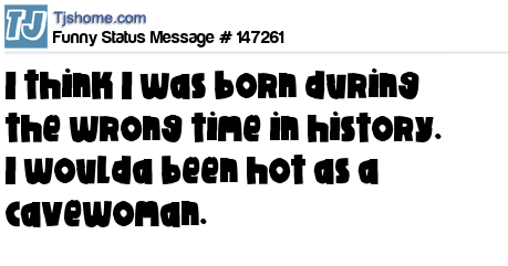 X says I think I was born during the wrong time in history.   I woulda been hot as a cavewoman.