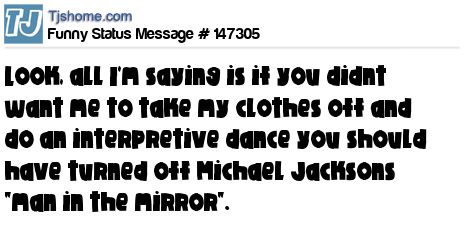 X says Look, all I'm saying is if you didnt want me to take my clothes off and do an interpretive dance you should have turned off Michael Jacksons "man in the mirror".