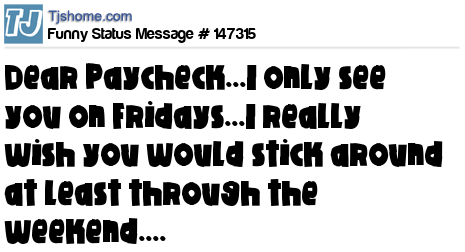 X says Dear Paycheck...I only see you on Fridays...I really wish you would stick around at least through the weekend....