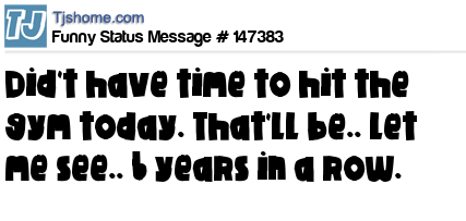 X says Did't have time to hit the gym today. That'll be.. let me see.. 6 years in a row.