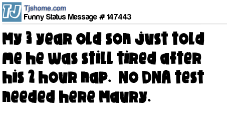 X says My 3 year old son just told me he was still tired after his 2 hour nap. No DNA test needed here Maury.