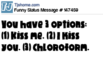 X says You have 3 options: (1) Kiss me. (2) I kiss you. (3) Chloroform.