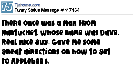 X There once was a man from Nantucket, whose name was Dave. Real nice guy. Gave me some great directions on how to get to Applebee's.