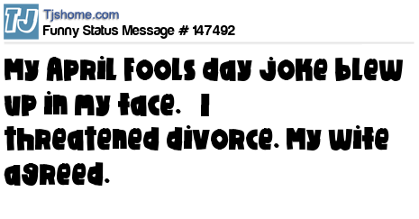 - # 95516 good joke today...single people change ur realtionship status to "in a relation". when friends ask who it is say "april....April Fools"