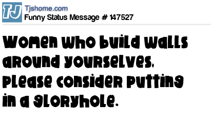 X says Women who build walls around yourselves, please consider putting in a gloryhole.